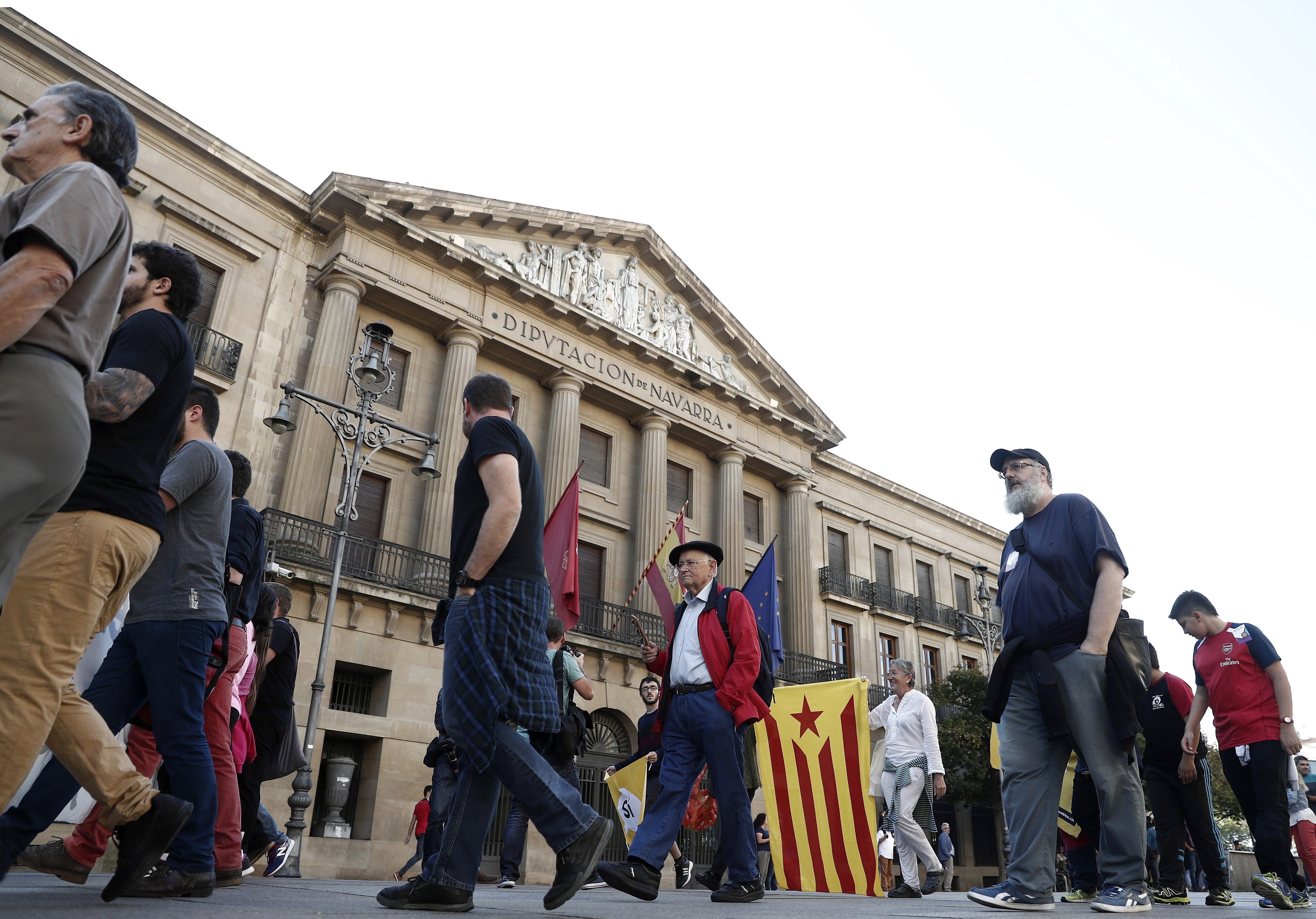 Un miler de persones s'han manifestat aquest dijous en solidaritat amb Catalunya pels carrers del centre de Pamplona.