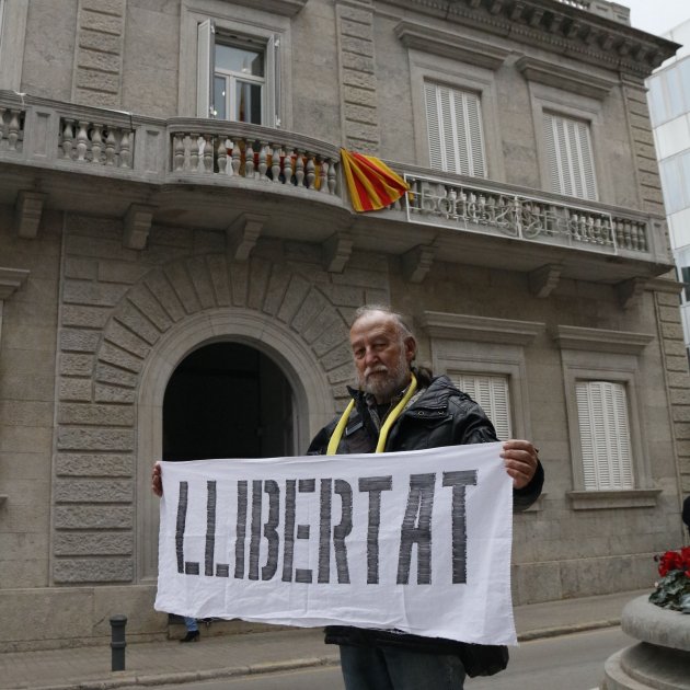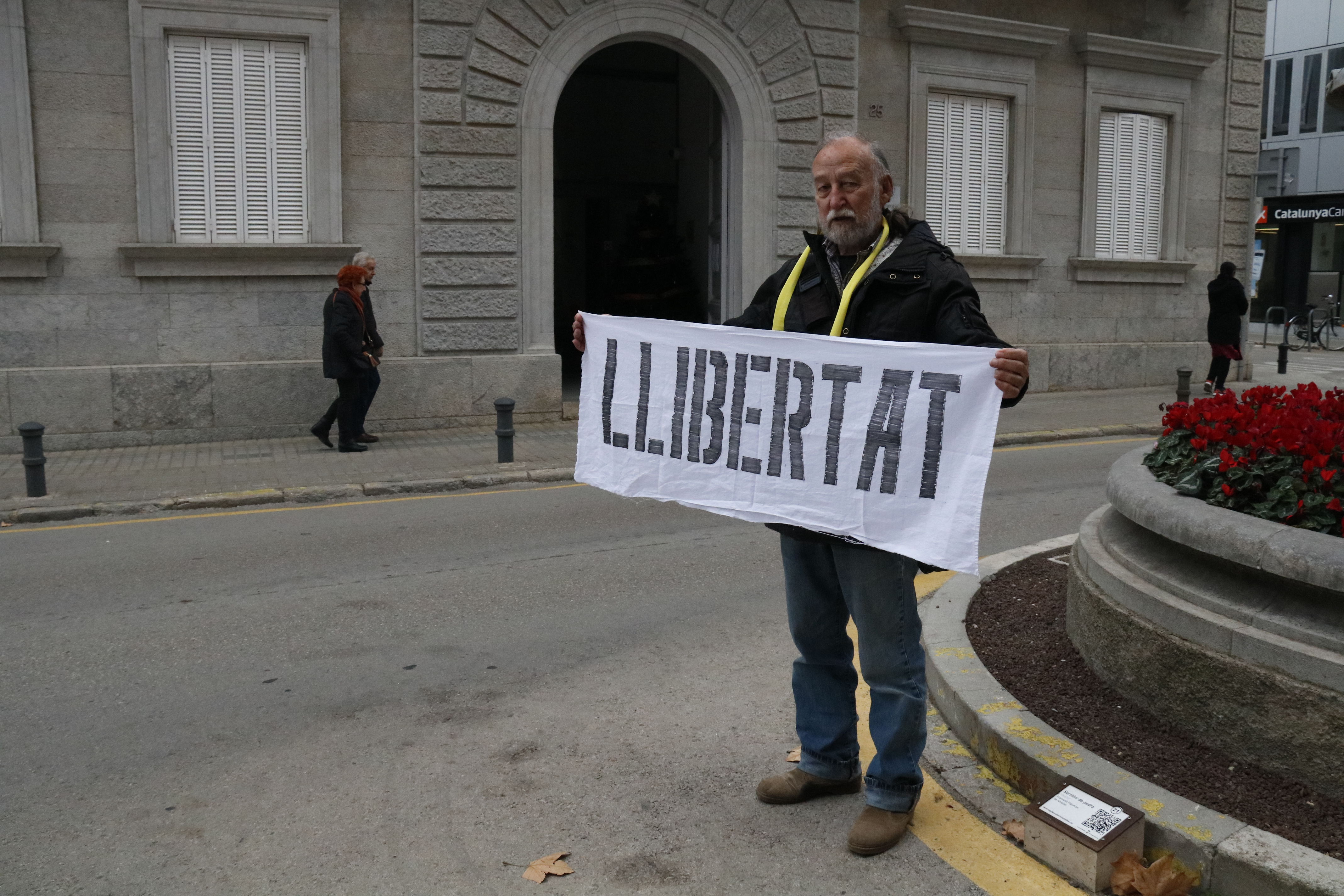 Amb una pancarta on deia 'llibertat' i una cinta groga penjada al coll, s'ha estat durant una hora a aquest emplaçament. Cada dia repetirà aquest gest i hi sumarà un minut més.