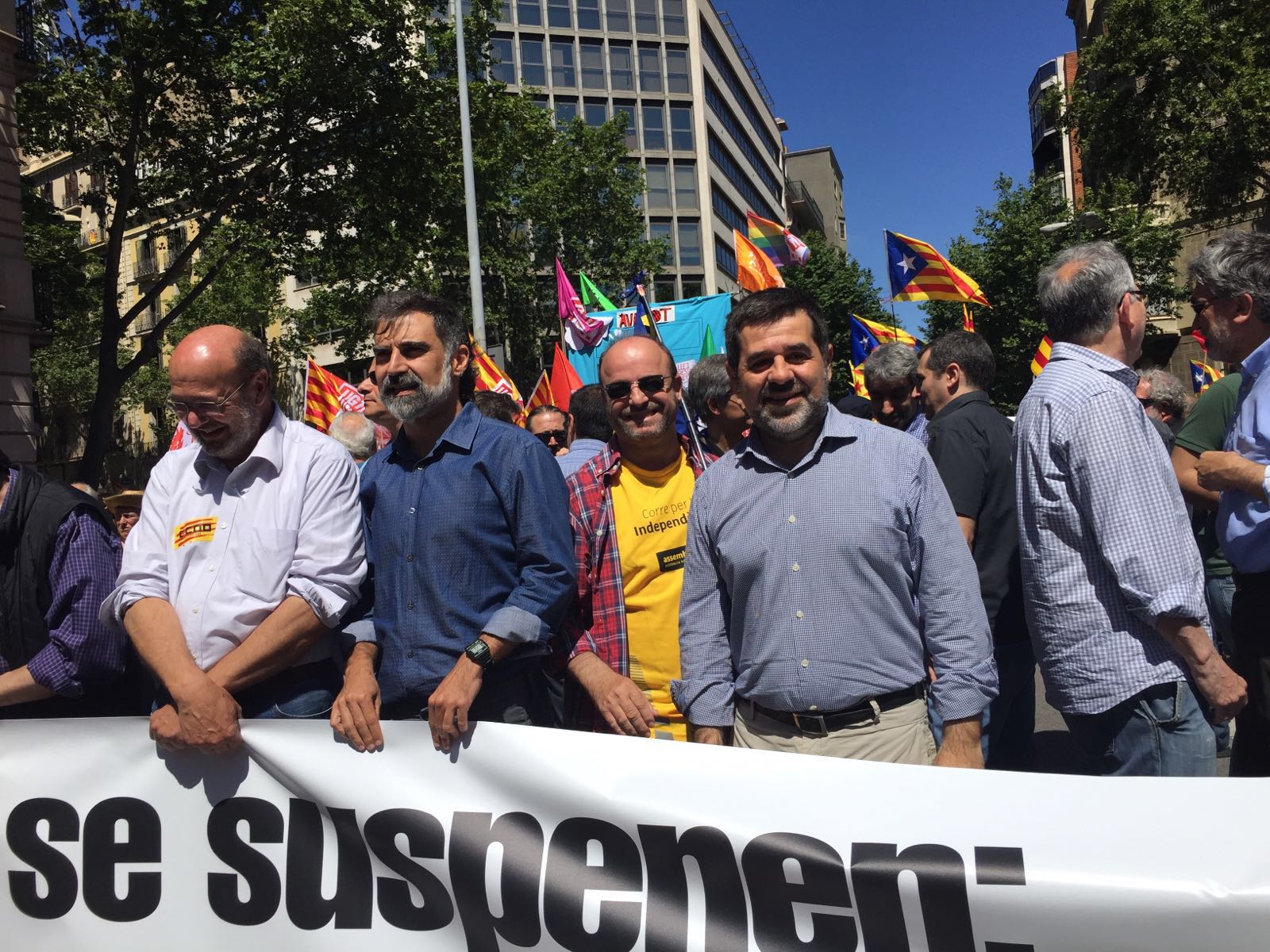 La marxa, que ha partit de la plaaza Urquinaona de Barcelona, l'han encapçalat el president d'Òmnium, Jordi Cuixart, el de l'ANC, Jordi Sánchez, i el líder de CCOO, Joan Carles Gallego.