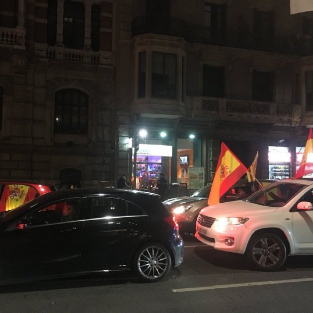 Un grup d'espanyolistes s'ha organitzat per fer una marxa de cotxes al carrer de Balmes de Barcelona reclamant la unitat d'Espanya i cridant consignes com "Puigdemont a prisión" i "Viva Espanya".