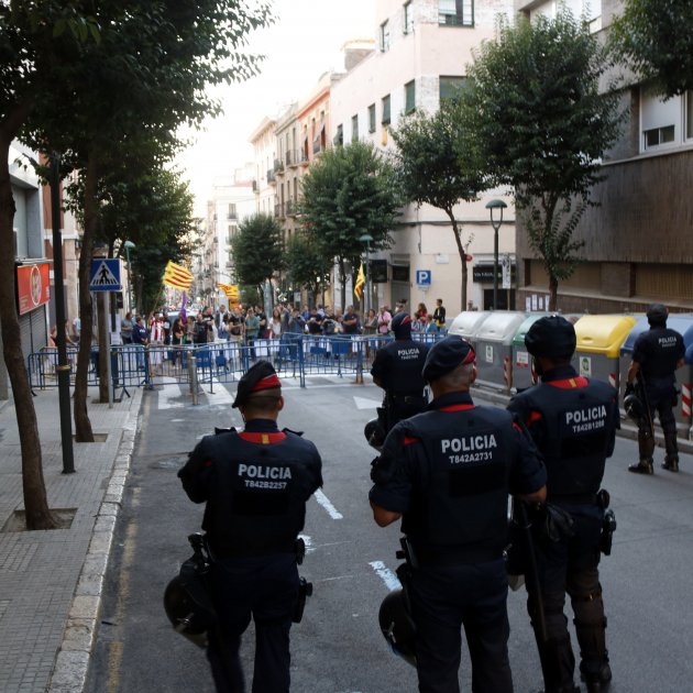 Davant aquesta protesta, els Mossos d'Esquadra han blindat la Delegació i han desplegat diverses unitats de l’ARRO, organisme de la policia catalana que s'encarrega de proporcionar efectius policials en casos puntuals en què una comissaria en necessiti més dels que disposa.