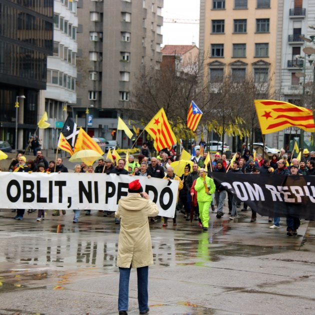 Unes 1.000 persones han participat aquest diumenge en una marxa groga que sortia des de cinc punts diferents de les comarques gironines i acabava a la plaça de l'U d'Octubre de 2017 a Girona.