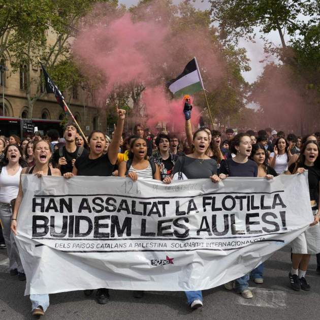 Milers d'estudiants es manifesten aquest divendres al migdia pels carrers de Barcelona per denunciar el que qualifiquen de genocidi a Gaza. També per exigir l'alliberament immediat de la flotilla humanitària Global Sumud, que va ser assaltada aquest dijous per l'exèrcit israelià en aigües internacionals i els tripulants de la qual són ara mateix detinguts en una presó a l'espera de ser deportats. La mobilització, convocada pel Sindicat d'Estudiants dels Països Catalans (SEPC), ha arrencat des de la plaça Universitat, punt on han confluït columnes de joves procedents de diverses universitats. La portaveu del sindicat estudiantil, Tània Ros, ha assegurat que el moviment estudiantil "seguirà a primera línia per aturar-ho tot i parlar de Palestina".