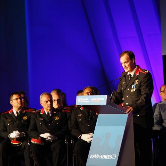 Eduard Sallent s'ha estrenat com a nou comissari en cap dels Mossos d'Esquadra durant l'acte dedicat a la policia catalana amb un reconeixement a tots els serveis d'emergència que treballen en l'incendi de les Terres de l'Ebre.