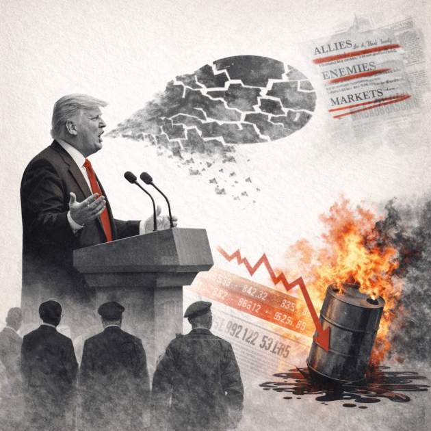 Avui divendres 3 d’abril és Divendres Sant, així que és un dels tres dies a l’any (juntament amb Sant Esteve i el dia de Cap d’Any) que no hi ha edicions de diaris en paper a Catalunya, mentre que a Madrid i a la resta de l’estat és Dissabte de Glòria (és a dir, demà), Nadal i l’1 de gener quan no és hi ha premsa escrita del dia. Alguns rotatius, però, actualitzen la seva portada en format PDF, tot i que de manera digital, incloent-hi els temes d’actualitat. És el cas de La Vanguardia, que dedica el tema principal -com també fan els diaris de la capital del regne- al conflicte a l’Orient Mitjà, i en concret, al “desconcertant” discurs que Donald Trump va dirigir a la nació sobre la guerra contra l’Iran. Un discurs que va causar “decepció” perquè no va aportar novetats significatives respecte al que va dir el dia anterior -que posaria fi a la guerra en dues o tres setmanes i que es desentenia de l’estret d’Ormuz-, i va tornar a provocar reaccions als mercats i la pujada del petroli. El món desconfia de Trump, sap que la seva paraula no té cap valor perquè les seves promeses i amenaces queden en paper mullat, i que per molt que asseguri que ha guanyat la guerra per pallissa i les capacitats militars de l’Iran estan destruïdes, el règim persa el desmenteix un cop i un altre. Teheran continua llançant drons i míssils contra Israel i els països del Golf aliats, i si compleix les seves amenaces. Ningú es creu a Trump, ni els seus aliats, ni els mercats, ni els enemics, i tampoc les portades, que parlen de “desconcert”, “vaivens”, de “més amenaces que certeses”.