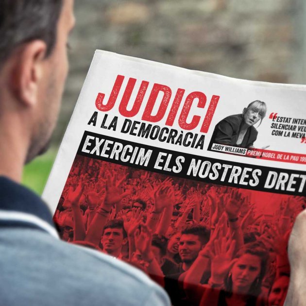 Òmnium Cultural distribueix aquest dijous 120.000 exemplars d'una nova edició del diari 'Judici a la democràcia'. La publicació es reparteix des de primera hora del matí a més de 50 parades de metro, tren i ferrocarril de Barcelona i el conjunt de l’àrea metropolitana. També hi ha més d'un centenar de punts de repartiment situats a totes les comarques del país.
