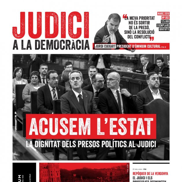 Òmnium Cultural reparteix aquest dijous 125.000 exemplars gratuïts del diari Judici a la democràcia que aborda els punts clau de les declaracions dels 12 processats per l'1-O així com les "inconcrecions" i "mentides" dels testimonis polítics que han passat les darreres setmanes pel Tribunal Suprem.