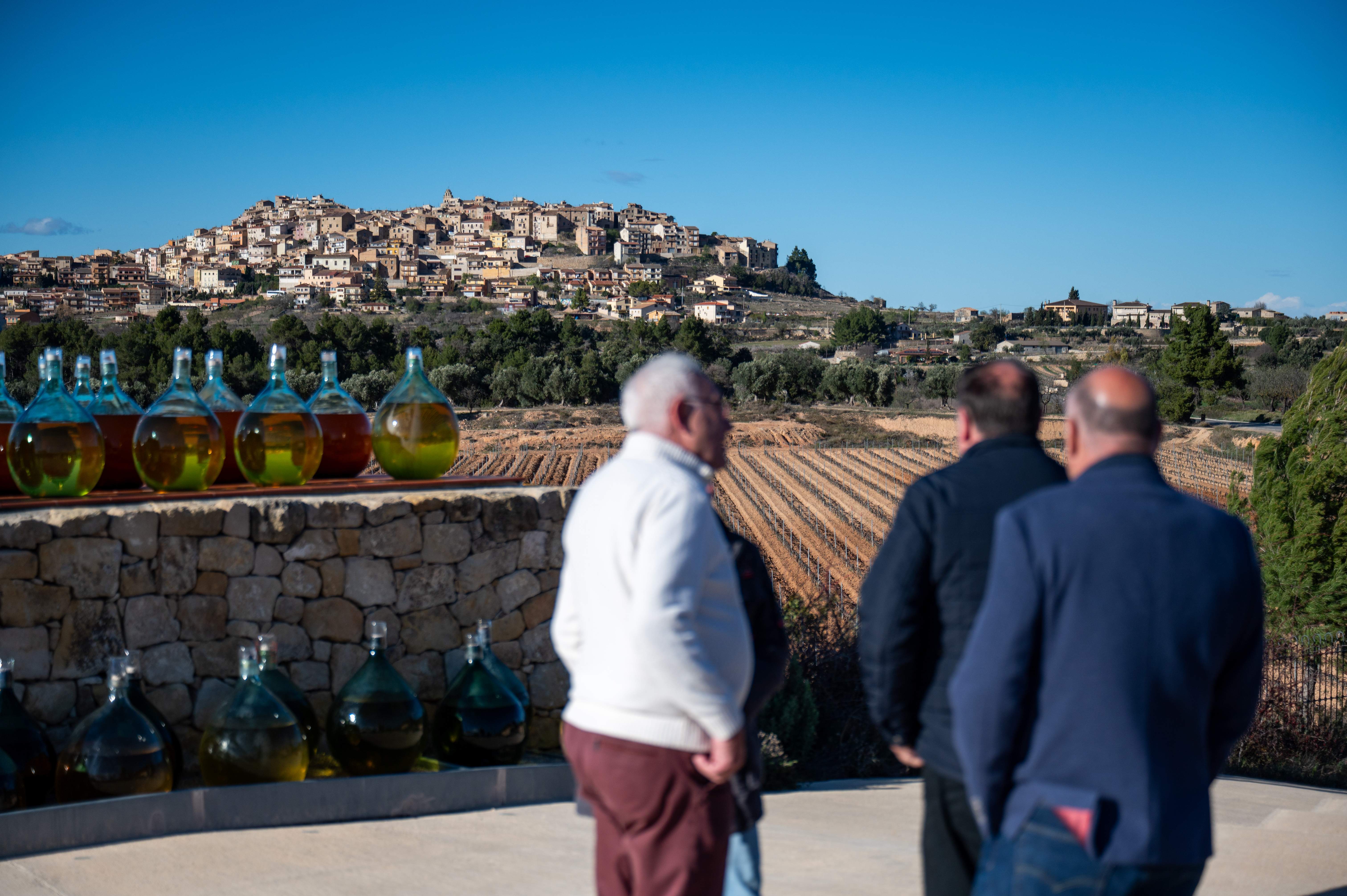 A pocs quilòmetres de Prat de Comte i just abans d’arribar a Horta de Sant Joan hi ha el celler de les Vinyes del Convent, que presumeix de ser un dels més tecnològics del país, on Junqueras s’ha citat amb un grup de quatre empresaris de la Terra Alta per conèixer les seves preocupacions. Abans visita les instal·lacions, també una capella consagrada pel bisbe de Tortosa. Les pluges del segon cap de setmana de març que van regar bona part de Catalunya amb quantitats d’aigua que no es veien des de mesos enrere van només esquitxar les Terres de l’Ebre, on van ploure poc més de cinc litres que el vent ha eixugat molt ràpidament. Com que l’objectiu de Junqueras és evitar les “visites de metge” deixa que els empresaris parlin durant el dinar -arròs i bacallà, tot regat amb els vins del mateix celler-i davant les seves queixes els demana que posi exemples i casos concrets. En la conversa es posa damunt la taula un dels altres problemes que pateix la comarca: a alguns dels seus pobles no els arriba la fibra òptica. Això suposa un factor afegit al despoblament en una comarca, la Terra Alta, que ha perdut la meitat dels seus habitants en l'últim segle, passant de més de 23.000 a 11.472 empadronats.