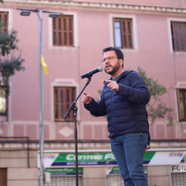 "El 10-N haurem de triar entre un PSOE que s’ha convertit en el defensor d’un projecte nacional espanyol immobilista, o una ERC que defensa la independència de Catalunya com la via per aconseguir un país amb drets per a tothom", ha conclòs Aragonès durant el míting.