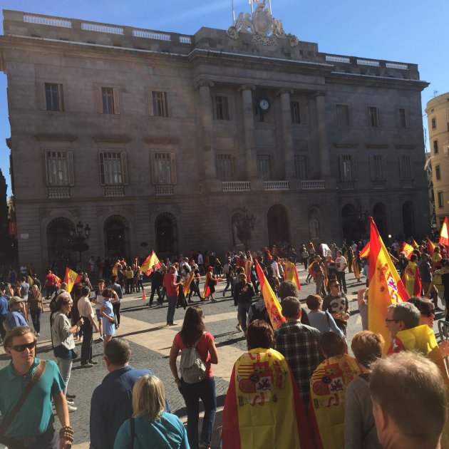 Alguns manifestants unionistes han decidit traslladar-se davant del Palau de la Generalitat després de la manifestació unionista organitzada per Societat Civil Catalana que reclamava la unitat d'Espanya.