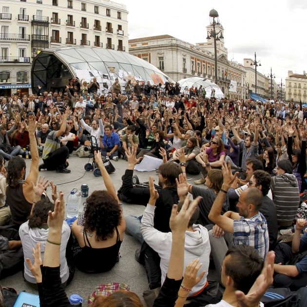 Fonts podemistes expliquen que el debat sobre el rol havia de prendre Podemos s'hauria produït en el sí de l'organització aleshores. Aviat l'objectiu va ser la deriva cap a la transversalitat i la canalització d'un discurs polític propi. Curiosament, un dels màxims ideòlegs de la formació, Íñigo Errejón, qui ha defensat no ser un partit a l'esquerra del PSOE, no va viure el moviment indignat, ja que es trobava a Bolívia, fent el doctorat. Podemos incorpora bona part dels elements d'aquelles manifestacions en el seu discurs, en tant que part d'aquells individus "van tenir una militància doble: militaven al 15M i després ho van fer a Podemos", comenta el professor. Personalitats de les marees blaves, blanques, grogues... o la pròpia PAH són els perfils que més tard haurien conformat les candidatures anomenades "del canvi", contribuïnt a "recapitalitzat" les línies de la formació morada. Però no eren els únics a nodrir-les.