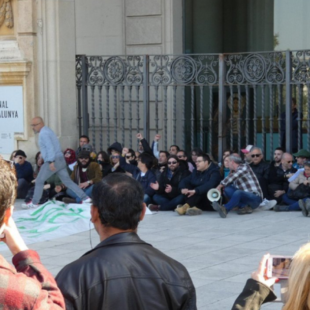 Una vintena de membres dels Comités de Defensa de la República (CDR) s'han plantat a les portes del Museu Nacional d'Art de Catalunya (MNAC) poques hores abans de la visita del Rei. Inicialment, la protesta contra la presència del monarca estava convocada a les cinc de la tarda, però alguns manifestants s'hi han aplegat hores abans.