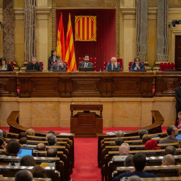 El marge de maniobra que el Tribunal Constitucional deixa al Parlament de Catalunya és cada vegada més estret i entorpeix les ja de per si difícils relacions entre independentistes. En successius i reiterats requeriments, l'alt tribunal ha advertit els membres de la Mesa que tenen l'obligació de paralitzar qualsevol iniciativa que s'assembli a d'altres anteriorment suspeses, concretament amb tot allò relacionat amb l'autodeterminació, la monarquia o la sobirania. Tres conceptes que apareixen a la proposta de resolució conjunta de resposta a la sentència aprovada aquest dimarts a la tarda amb els vots favorables de JxCat, ERC i la CUP, l'abstenció dels comuns i el vot en contra de PSC i PP. Cs s'ha absentat de la votació. El text rebutja les condemnes i exigeix la llibertat dels presos i el retorn dels exiliats.