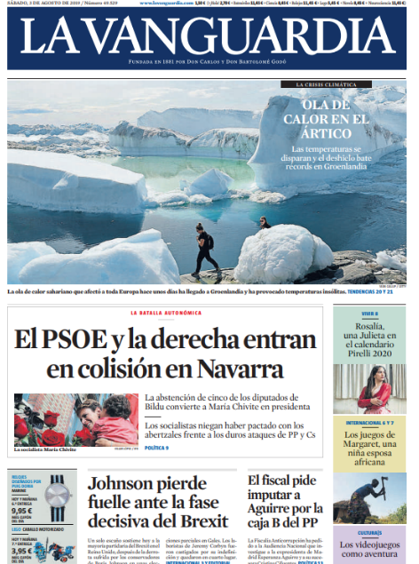 Millor posar tota l’atenció en Navarra i “la socialista Chivite, presidenta de Navarra amb el permís de Bildu”, segons proclama l’ABC. La investidura gràcies “als hereus d’ETA” i la determinació d’Arnaldo Otegi de fer els homenatges que facin falta als presos, és el que més preocupa i ocupa a la premsa de Madrid, on una tercera dona ressuscita després d’un llarg temps de silenci. María Dolores de Cospedal, que va abandonar definitivament la política el novembre passat després de sortir esquitxada pels sucosos àudios del comissari Villarejo, reapareix, de vacances a Palma, per donar quatre consells a l’ara president del PP. L’exsecretària general del PP aconsella des de La Razón a Pablo Casado, que és allà on és gràcies a ella i a la seva rivalitat amb Soraya Sáenz de Santamaría, que seria “un error” desaprofitar l’experiència del PP. I un altre consell, cal unir el centre dreta perquè treballi plegat. Vaja, que si vols ocupar la Moncloa i fer fora els socialistes potser que et centris una mica company, li ve a dir.