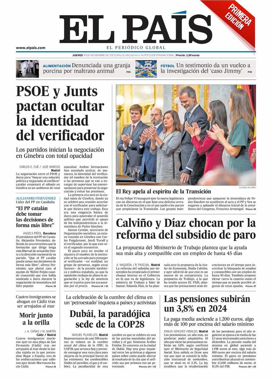 Tot això és ben sabut. Ve a propòsit de les portades dels diaris de Madrid d’aquest dimarts. Cadascun defensa la seva posició fent palanca amb la part que li convé del discurs del Rei en la inauguració de la legislatura espanyola. Al Trio de la Benzina, la campana que els fa venir salivera és el concepte “una Espanya sòlida, unida, sense divisions” —els tres marcant el pas sòlids, units, sense divisions—. En canvi, El País, el diari dels boomers progres, interpreta que “Felip VI apel·la a l’esperit de la Transició”, una manera de dir el mateix sense caspa ni vergonya, tot refermant la narrativa fabulosa de l’ampli pacte fundacional de la democràcia espanyola, la Constitución que nos dimos entre todos, etcètera, de la que El País se’n considera l’intel·lectual col·lectiu i el guardià i marmessor mediàtic.