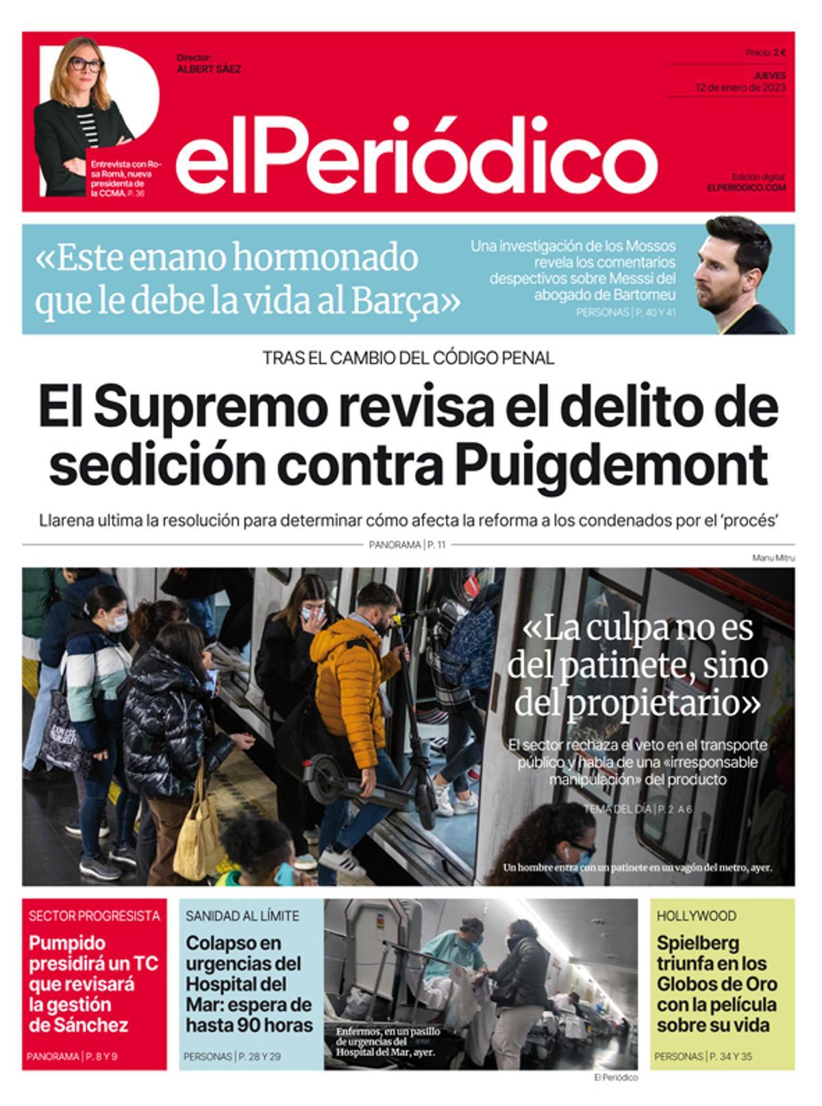 De vegades, potser la majoria de vegades, les portades s’expliquen més pel que no diuen que pel que diuen. Aquí, al Quioscos & Pantalles s’ha dit i redit, això. Aquest dijous és un d’aquells dies on el que callen les portades explica tantes coses o més que el que remarquen. Els diaris de Madrid no diuen ni piu de la revisió de les sentències als líders del procés independentista condemnats pel Tribunal Suprem i de les acusacions contra els exiliats. El Mundo publica un subtítol on retorça la realitat altra vegada i atribueix als “presos del procés” la iniciativa de la revisió, quan és un tràmit que el Suprem inicia d’ofici, obligat pel canvi del Codi Penal. A més a més que ja no hi ha “presos del procés”. Res no diu dels tràfecs del magistrat Pablo Llarena amb la causa de Carles Puigdemont i la resta d’exiliats. La Vanguardia i El Periódico, en canvi, obren amb aquest tema, que també ignoren les portades de l’Ara i El Punt Avui.