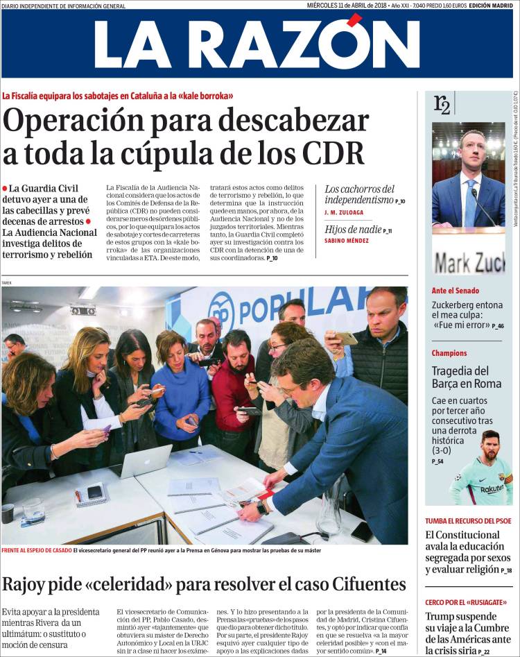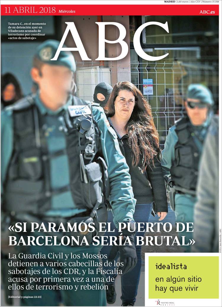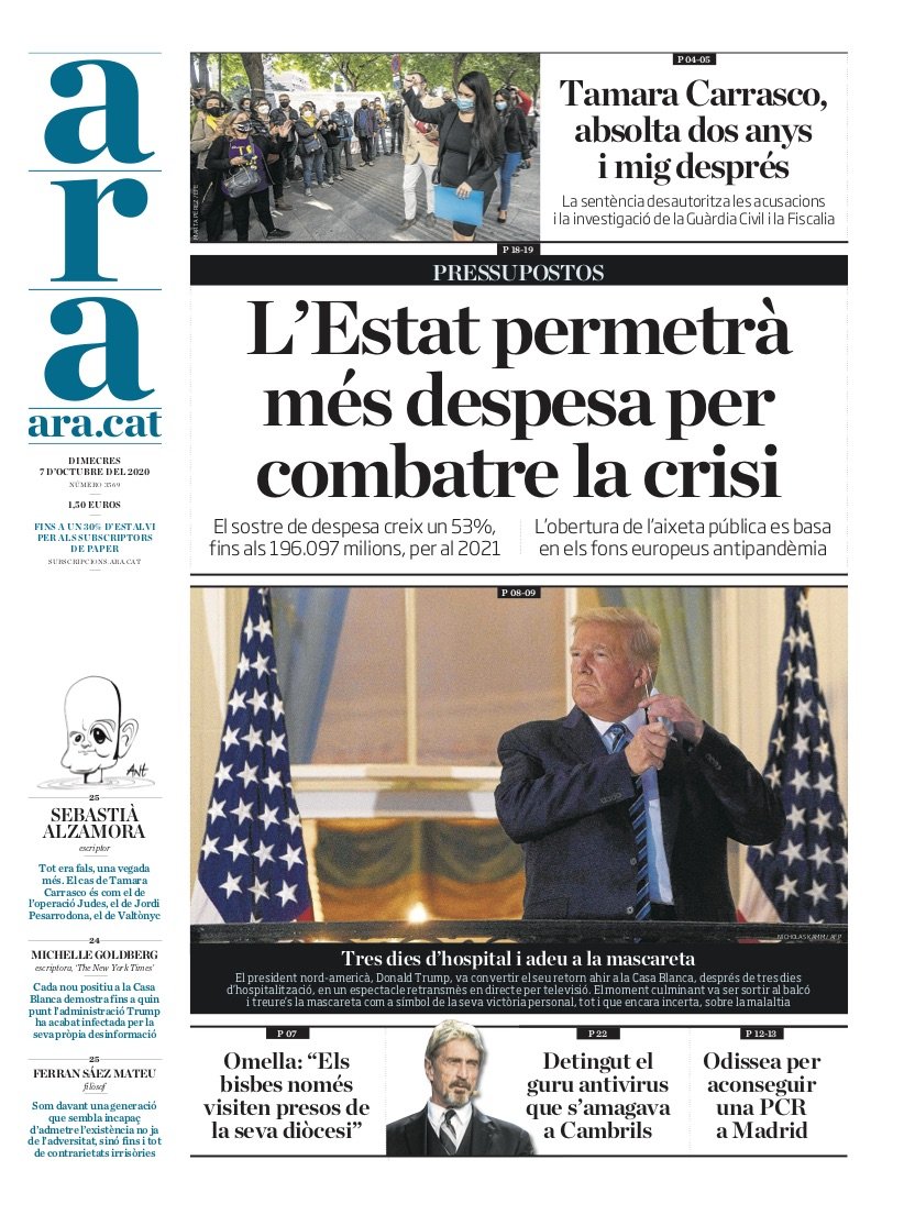 El comentari de les portades d’avui el fan les portades de fa 29 mesos. El 10 d'abril del 2018, la Guàrdia Civil va detenir Tamara Carrasco, una activista indepe. Li van trobar un xiulet, una carota de Jordi Cuixart i un missatge al mòbil. Els agents ho van fabricar com a delictes de terrorisme i de rebel·lió. El dia següent, els diaris de Madrid i Barcelona, excepte El Punt Avui, van donar per bona la versió dels uniformats, alguns amb un xic de distància i altres (El Mundo, ABC i La Razón) amb entusiasme. Les portades del dia 11 d'abril del 2018 són, avui, portades de la vergonya i la mentida perquè, 29 mesos d’infern policíac i judicial després —inclòs el confinament al seu municipi i la prohibició de visitar la mare—, el jutge del penal 25 de Barcelona va absoldre ahir Tamara de desordres públics, que és el delicte en que va deixar l’Audiència Nacional la fantasia terrorista dels atestats policíacs.