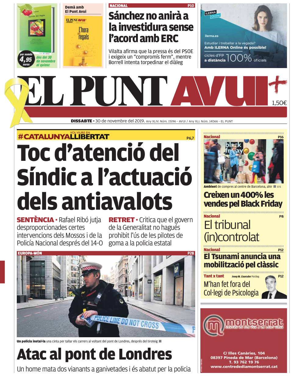 Von der Leyen s’endurà un bon disgust si llegeix la portada d’El País o de La Razón, on s’explica que Ciutadans i el PP —partit aquest del mateix grup que la CDU de la presidenta europea— volen entregar a Vox una vicepresidència del Congrés. Ai, els indepes, què dolentots que són.