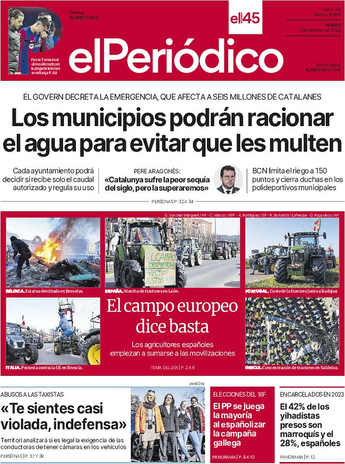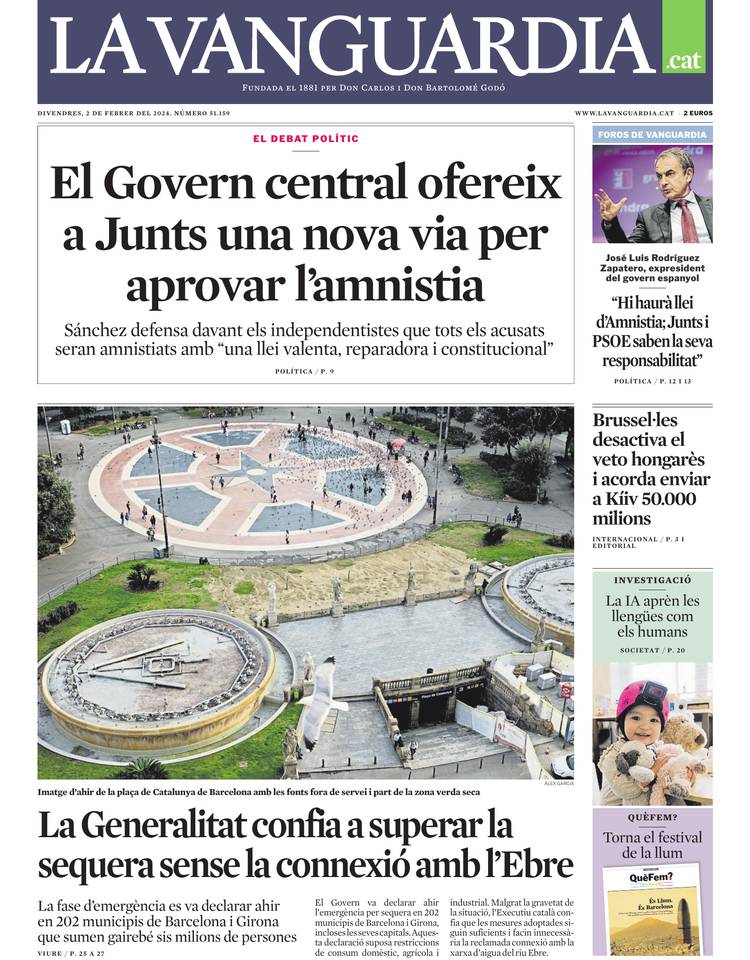 És certament estúpid acusar el Procés independentista com fa l’ABC a la segona portada que publica en la pàgina 2. Una sequera com l’actual era gairebé impossible de preveure. A més, els governs estan endeutats fins al capdamunt i tenen les mans lligades per invertir. Les autonomies ho tenen pitjor encara, perquè els seus pressupostos estan, en la pràctica, intervinguts, i no disposen de capacitat d’endeutar-se més. Els ajuntaments, directament, no poden fer dèficit a causa de les restriccions legals imposades pel llavors ministre d’Hisenda, Cristóbal Montoro, per combatre les crisis dels anys 2008 i 2012. Diu La Vanguardia que el Govern està convençut que Catalunya —l’àrea en emergència, la qual suposa el 80% de la població— superarà la sequera sense recórrer a l’aigua de l’Ebre, la conca salvada de l’escassedat. El mateix diari s’escandalitzava a la portada del dijous —una mica tartufescament— que el pantà de Mequinensa obrís comportes per alliberar excedent d’aigua en comptes d’habilitar un sistema per destinar-la als territoris més necessitats.