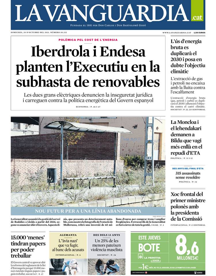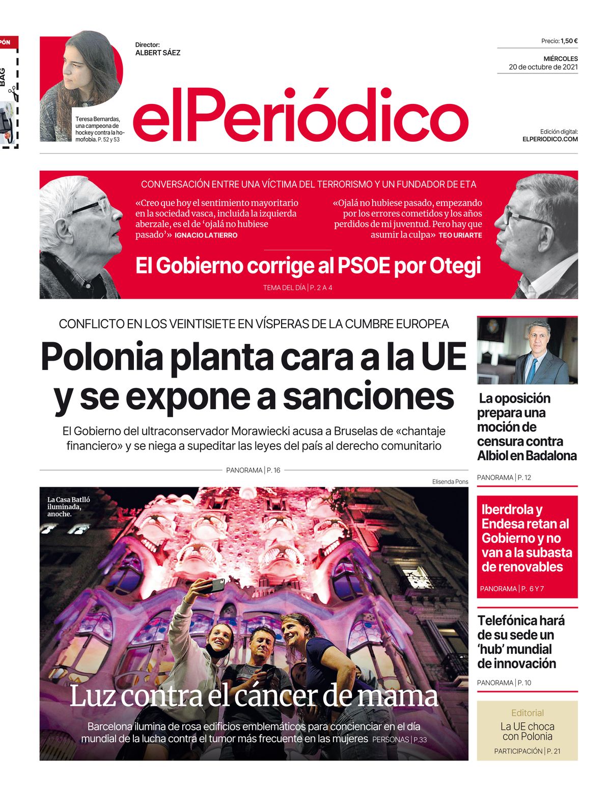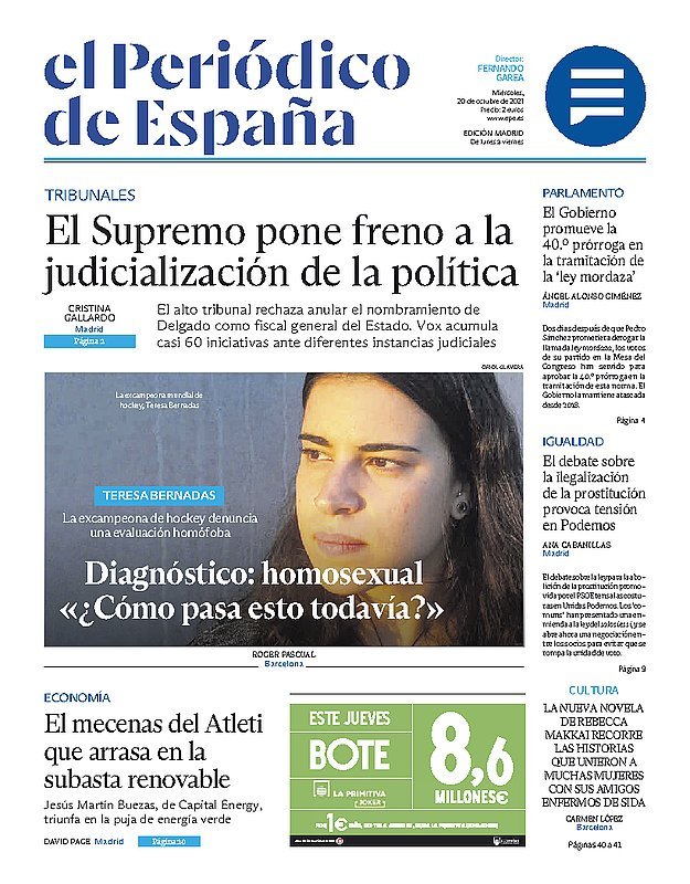 Mentrestant, al país real, la coalició PSOE-Podemos, que es va comprometre a derogar la “llei mordassa”, va aprovar ahir a la mesa del Congrés dels Diputats la 40a pròrroga del termini d'esmenes a la proposta d’eliminar-la registrada pel PNB fa un any. Traduït, vol dir que manté la proposta aturada una altra temporadeta més. La llei mordassa defineix com a sancionables més de 40 conductes noves relacionades amb la protesta social o política. Sancionables administrativament, és a dir, pel govern, tot i no ser delicte, i sense necessitat de procés judicial, com expliquen Laura Huerga i Blanca Busquets a Tu, calla! Ho conta en portada El Periódico de España. Potser els diaris guanyarien autoritat si apliquen al govern espanyol el mateix nivell d’exigència que a l’esquerra abertzale.