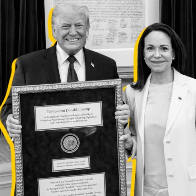 L'opositora veneçolana María Corina Machado va visitar aquest dimecres la Casa Blanca per aconseguir el suport del president dels Estats Units, Donald Trump, però se'n va anar amb les mans buides. De fet, hi haurà qui pugui pensar que la trobada li ha sortit a deure... perquè, al final, la visita ha estat una mica ridícula. Machado va lliurar a Trump el seu Nobel de la Pau, mentre que el magnat republicà no va voler ni que els veiessin junts —la imatge que il·lustra aquest article surt de les xarxes socials. Les portades d'aquest 16 de gener són les portades de la falsedat, la vergonya, l'autoengany... Hi ha molts sentiments que poden aplicar-se en la performance que vam veure aquest divendres.