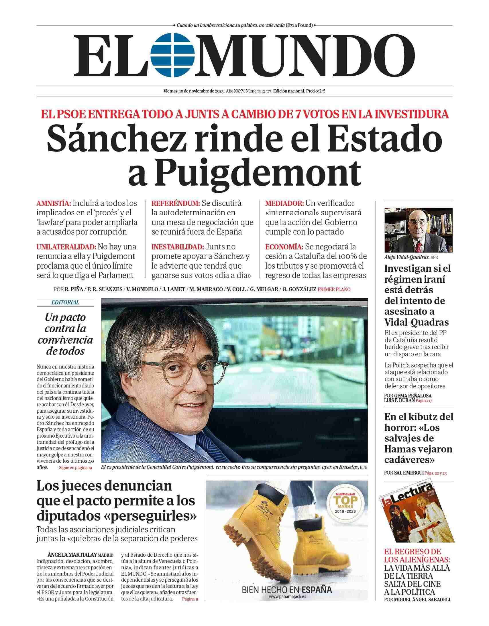 Per titular aquestes enormitats (Espanya s’acaba!) sense passar vergonya, els diaris del Trio de la Benzina afirmen, per exemple, que l’acord sotmet el poder judicial a la supervisió del Legislatiu. Això no figura en el text dels acords. Afirmen també que se cedirà a la Generalitat de Catalunya el 100% dels impostos, cosa que als acords s’esmenta com la postura de Junts en la posterior negociació, alhora que s’especifica que el PSOE no ho veu i només defensa la reforma de l’actual sistema per atorgar “singularitat” a Catalunya. Afirmen que “Puigdemont imposa el cupo [basc]”, i no s’adonen que els independentistes han passat d'exigir la recaptació directa del 100% dels impostos —gros— a demanar-ne la cessió, és a dir, l'ampliació del sistema vigent de quotes, diferent i molt més exigu que el foral. Afirmen que PSOE i Junts han pactat un referèndum. No. És la proposta que Junts durà a la següent reunió amb els socialistes. I així tot. Ho veuen com una traïció i aquest és el relat en què insistiran d'ara endavant, tot afegint-lo al del "govern il·legítim" de Pedro Sánchez que ja repetien la legislatura anterior.