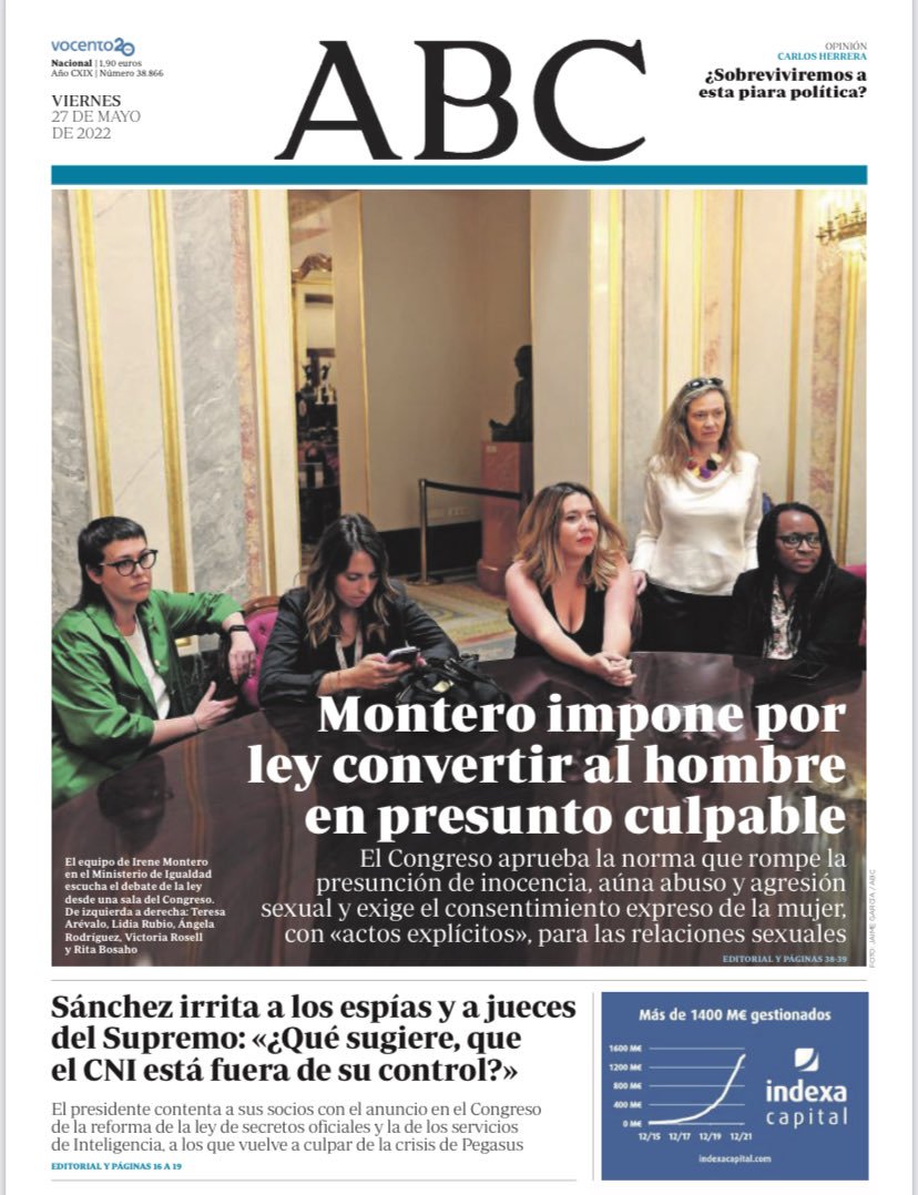 Entre l’Ara i El Periódico et fan avui el resum del dia polític d’ahir en dos títols. El PP rescata Pedro Sánchez al Congrés perquè s’havia quedat penjat de la bastida en perdre el suport dels socis parlamentaris en el tràmit de la llei de l'audiovisual. El Mundo es fa un embolic i diu que “Moncloa detecta una ensorrada de Sánchez per Pegasus”. Au va. La dreta mediàtica, encegada pel seu costum de titular amb interpretacions recargolades en comptes de fer-ho amb els fets, va perdre la millor oportunitat de l’any per posar a l’estenedor el president del govern espanyol. En tenien prou amb dir què va passar, sense afegir-hi cap exegesi vestida de verbs altisonants i fonts sense acreditar: l’abstenció del PP va ajudar el PSOE a fer passar la llei de l’audiovisual a la qual s’oposava Esquerra Republicana —llei que fa uns mesos va ser clau perquè ERC votés els pressupostos de Pedro Sánchez—. En resum, que el PP va ajudar el PSOE a enganyar Esquerra per enèsim cop. Ja es poden calçar, perquè diu El País que Sánchez vol repetir la mateixa jugada per aprovar la reforma de les lleis que regulen el CNI i els secrets oficials. Pel que el president espanyol va explicar ahir, aquestes reformes fan pinta que seran un maquillatge. No hauria de ser difícil per als socialistes aconseguir l’acord de la dreta, ni que estigui molt enfadada —o ho faci veure— amb les raons amb què Sánchez va justificar aquests dos canvis legals.