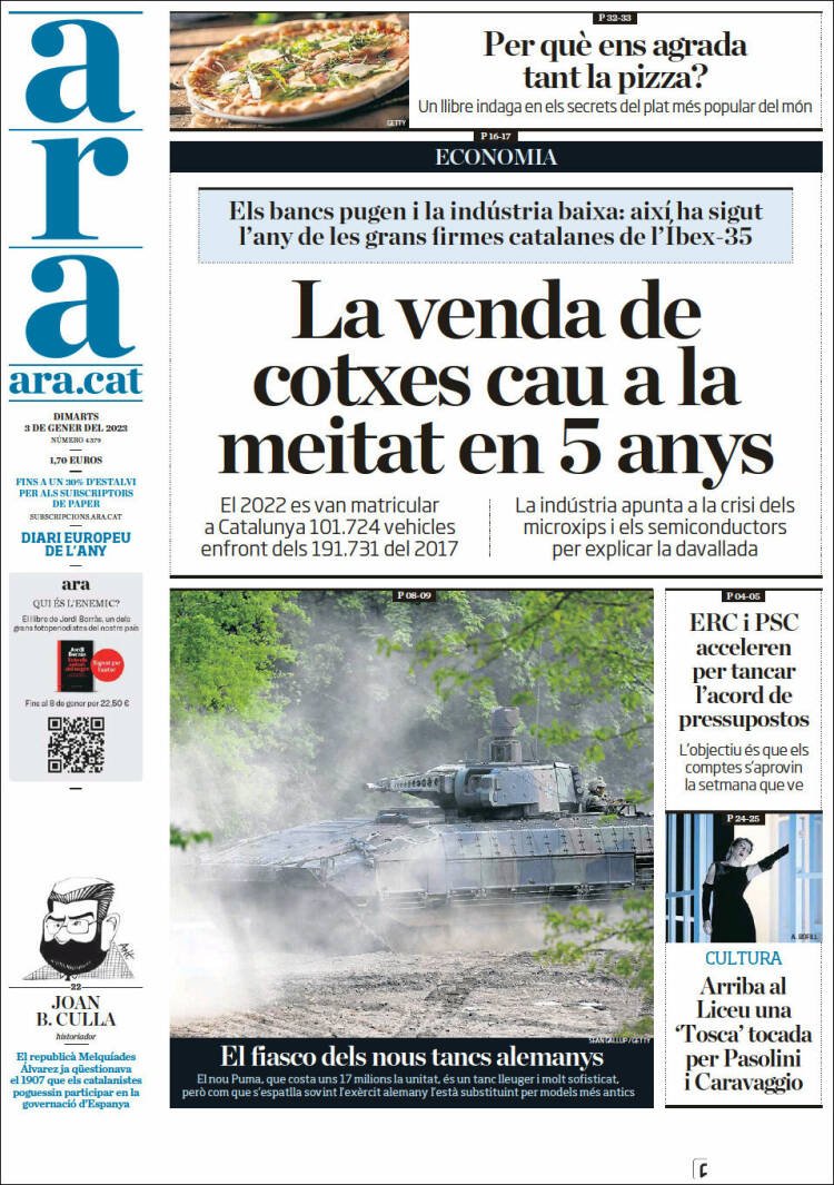 Amb l’inici del nou any han entrat en vigor les mesures anticrisi anunciades a bombo i plateret per Pedro Sánchez fa tot just una setmana per pal·liar els efectes d’una inflació desbocada a la cistella de la compra. La supressió i/o rebaixa de l’IVA en els aliments ja ha arribat a supermercats i comerços, però l’efecte final per al consumidor no ha estat a l'altura de les expectatives, ja que l’impacte final en els preus dels aliments és, certament molt baix. I aquest és el tema que ha ocupat a una part dels diaris que trobem aquest dimarts al quiosc, portades que posen aigua al vi a la rebaixa de l’IVA als aliments.
