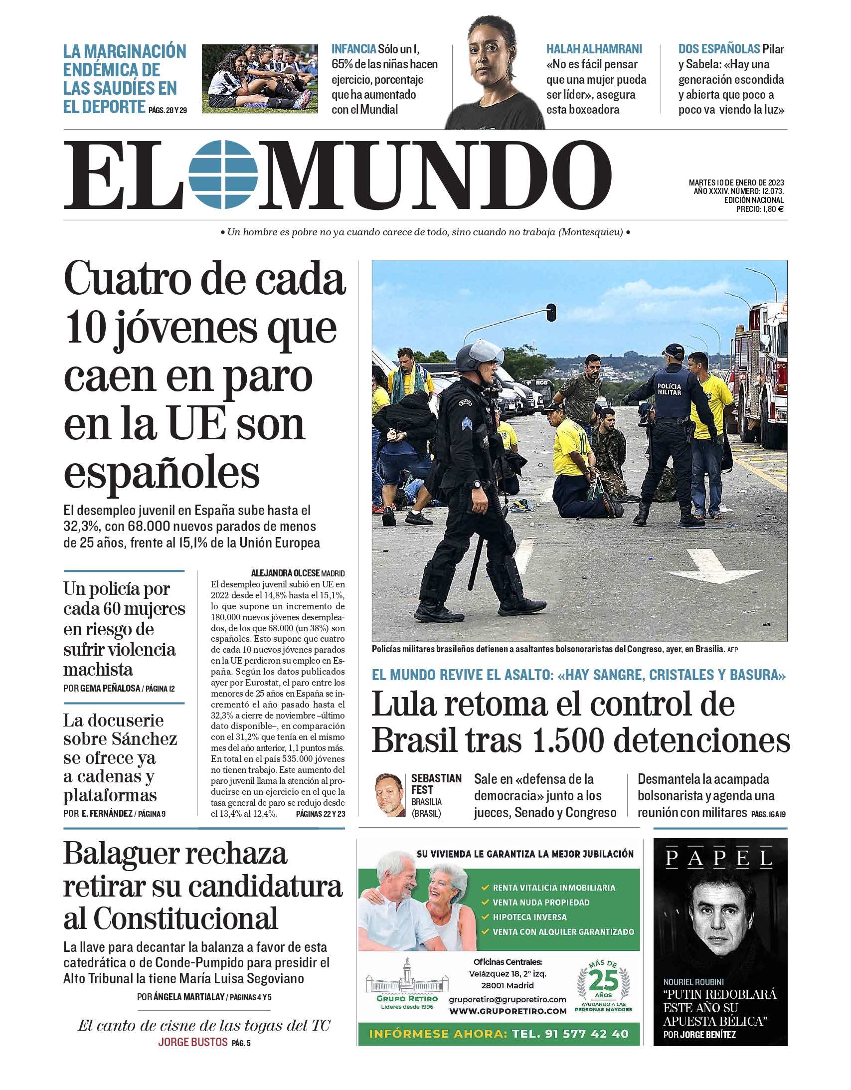 Dues notes més —potser exagerades i pedants— de les portades d’aquest dimarts. Una apareix al títol principal d’El Mundo, que parla dels joves “que cauen en l’atur”. Que cauen, diu, com algú que va per terra pel carrer perquè una llosa que balla li ha fet perdre peu o com algú que “cau en les drogues”. Caure en l’atur, com si fos culpa dels aturats, als que es revictimitza com a perdedors i causants de la seva pròpìa desgràcia. Tan fàcil com era dir “Quatre de cada 10 aturats joves de la UE són espanyols”. L’altre comentari és encara més malpensat i té a veure amb el títol principal de La Razón. S’hi explica que “Feijóo atura la denuncia a la UE contra Sánchez” i, amb l’agua que baixa, ja no se sap si és una informació freda i sense biaix o és com un avís mafiós per a que tornin a actuar les mateixes forces de la dreta dura de l’interior del PP per a que Feijóo sigui menys formal i bon jan i continuï assetjant al govern espanyol per terra, mar i Brussel·les, com ja va passar amb l’acord que el president del PP tenia cosit amb el PSOE per desbloquejar la renovació del Consell General del Poder Judicial i del TC. A Pedro Sánchez, ni aigua.