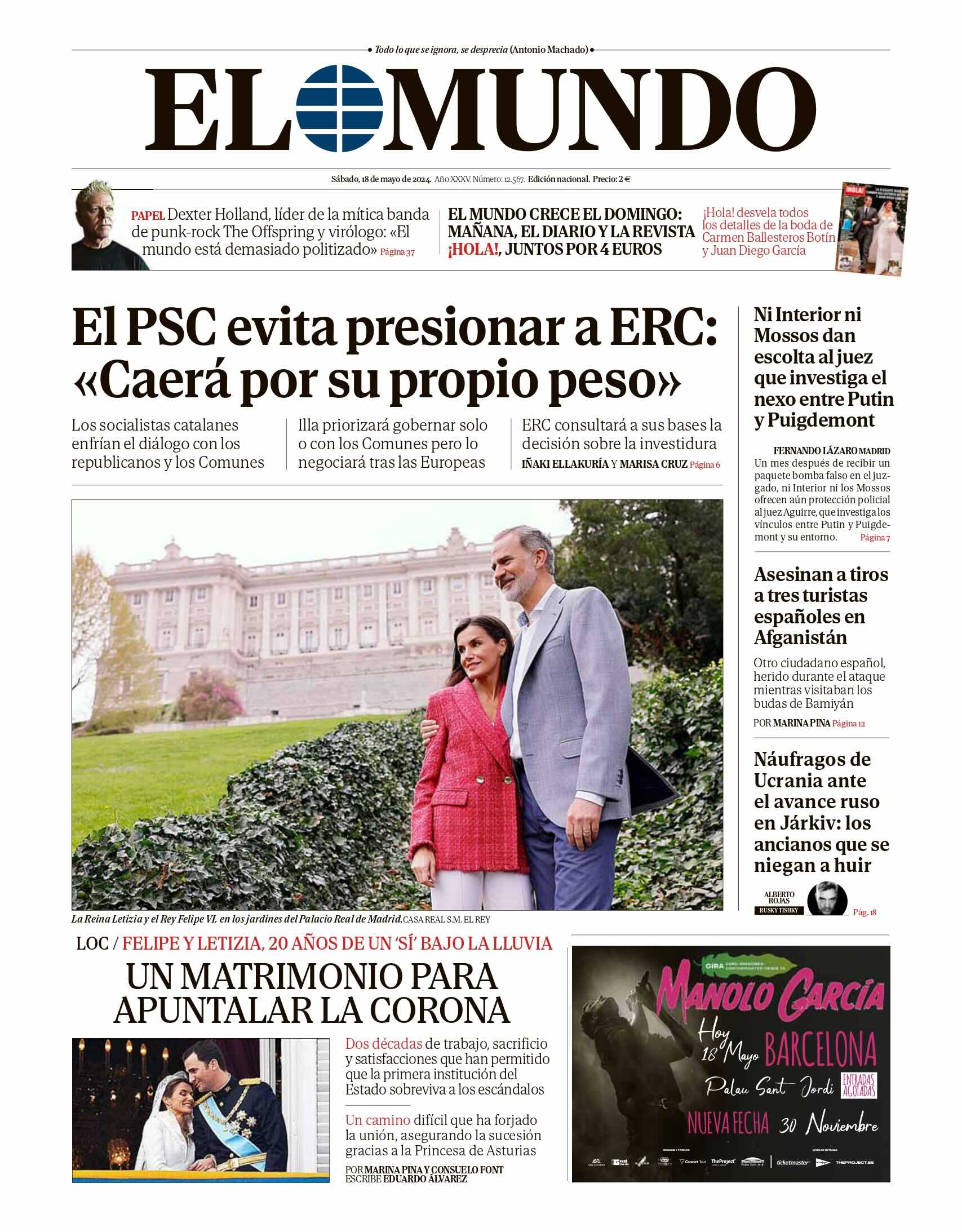 La política és el tema principal de les primeres pàgines de la resta. El Mundo i l’Ara obren amb la situació d’Esquerra Republicana, que no només acaba d’obrir un debat intern —una crisi, segons com es miri— sobre els lideratges i el programa, sinó que ha de patir la pressió de les forces que volen comprometre els seus 20 diputats. El Partit dels Socialistes els espera per investir Salvador Illa president de la Generalitat. Carles Puigdemont demana els vots republicans —i l'abstenció del PSC— en suport de la seva candidatura.