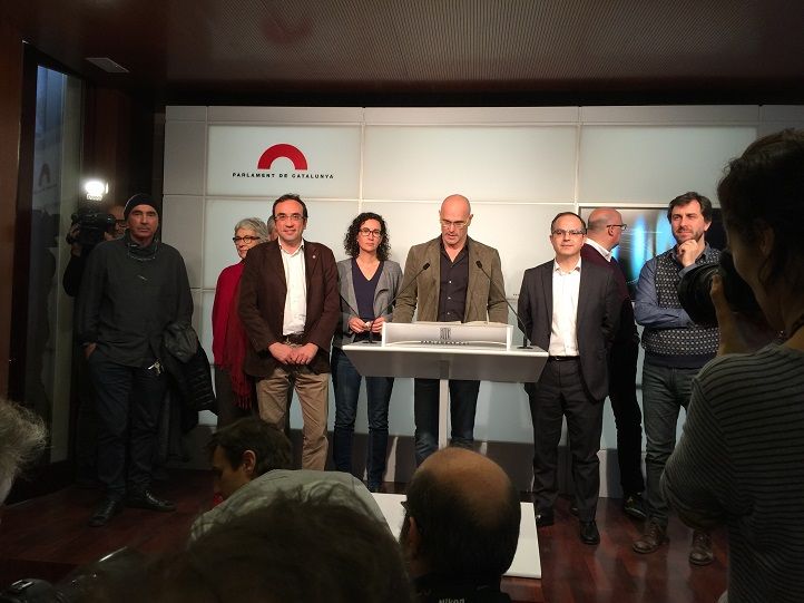 Una proposta que ha arribat gairebé tres mesos després de les eleccions. De fet, a un quart d'onze de la nit d'ahir encara se'n transcrivien detalls amb el Parlament a les fosques. Tot el ferro de JxSí ha comparegut a tres quarts d'una del migdia a la sala de premsa del faristol per posar-lo de llarg i explicar que el preacord té com objectiu "ampliar la base social" de l'independentisme i és "escrupulosament democràtic".