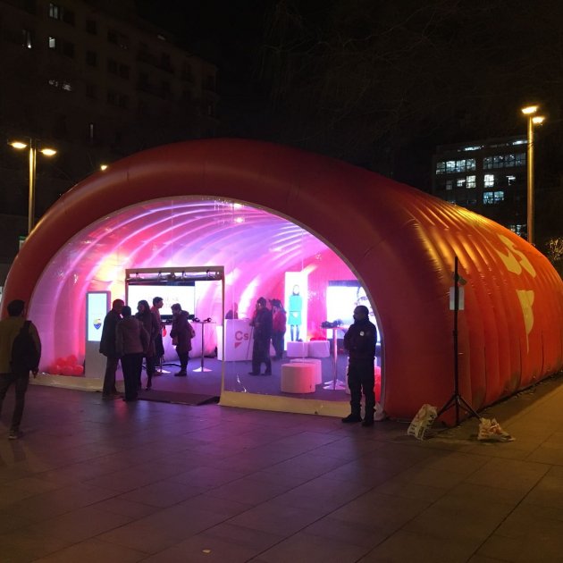 Ciutadans va instal·lar la carpa amb el permís de la Junta Electoral, i no paga res a l'Ajuntament per ocupar l'indret perquè durant les campanyes electoral els partits n'estan exemps.