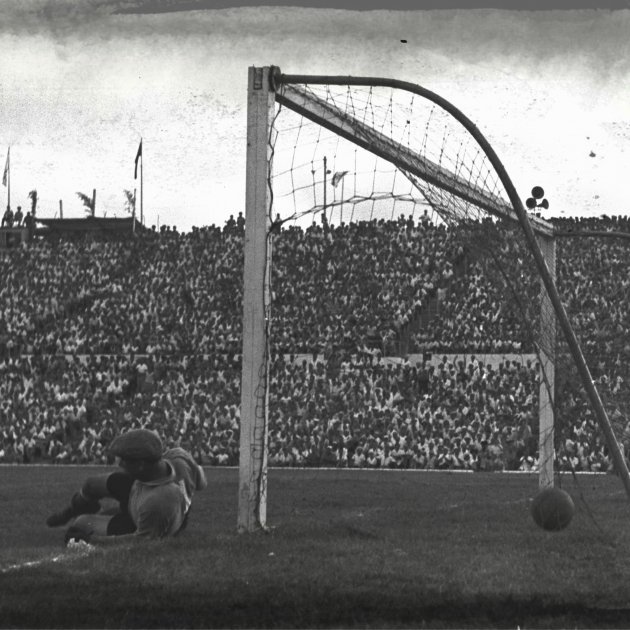 Foto: Lev Yashin, "l'Aranya Negra", encaixa un gol en un Israel-Rússia (1958)