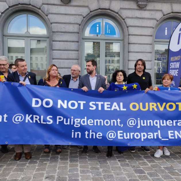 Sota la pancarta "No ens robeu els nostres vots" el grup de manifestants ha denunciat amb la concentració d'aquest dimarts al migdia que s'ha violat el seu "dret a la representació política" al Parlament Europeu.