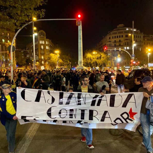 La marxa ha començat tallant l’avinguda Diagonal i el carrer Balmes fins arribar a la seu de Ciutadans, on els manifestants s'han quedat una estona protestant. La convocatòria instava als assistents a portar castanyes de casa, però no hi ha hagut cap llançament contra la seu del partit taronja, que estava blindada pels Mossos. Qui sí que ha protagonitzat algun llançament han estat veïns de la seu, que han abocat galledes d'aigua i algun objecte sobre els manifestants, en almenys tres ocasions.