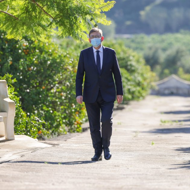 Imatge principal: El president de la Generalitat Valenciana, Ximo Puig, des de la casa de Francisco Brines a Oliva/ Europa Press