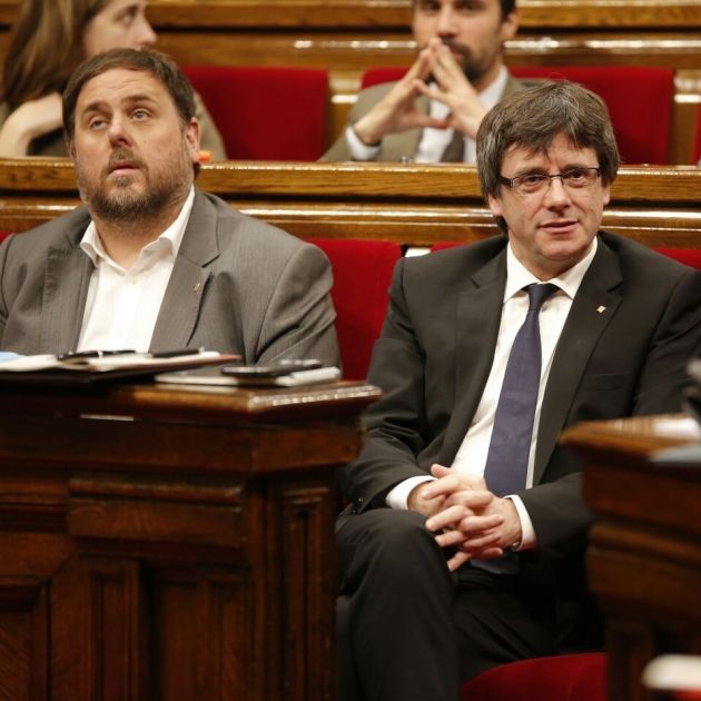 El president, Carles Puigdemont, i el vicepresident, Oriol Junqueras, s’han esforçat aquest matí al Parlament per trencar amb la imatge de divisió al Govern provocada pel debat al voltant de l’IRPF.