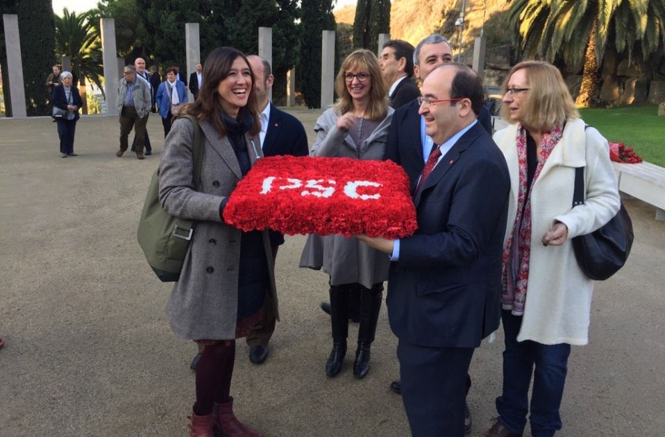 Els socialistes han exhibit aquest matí unitat davant la tomba de Lluís Companys, amb una ofrena entregada per Miquel Iceta i Nuria Parlon, que avui es disputen el lideratge del partit en unes primàries força ajustades. Els candidats no han fet declaracions, però qui sí que n'ha fet ha sigut la secretària d'organització del PSC, Assumpta Escarp, que ha rebutjat aquest dissabte la "judicialització i la unilateralitat" i ha reclamat diàleg per solucionar l'encaix entre Catalunya i l'Estat espanyol.