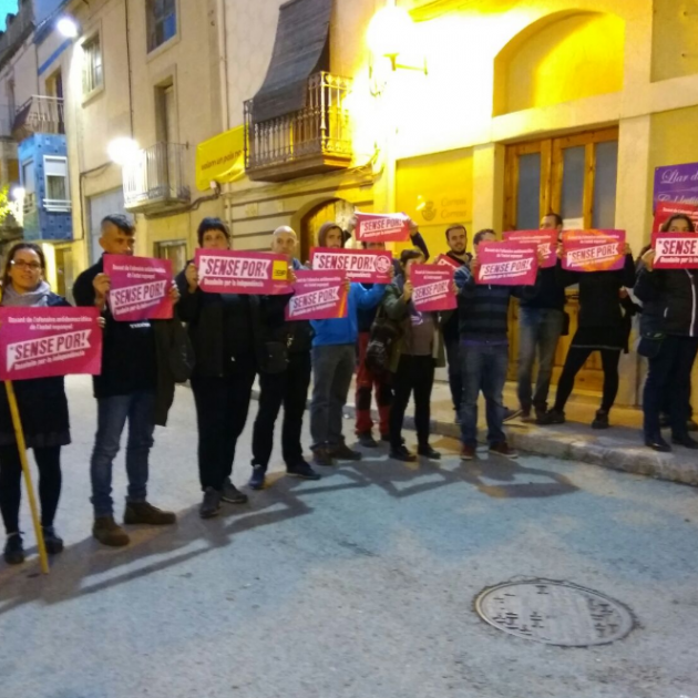 Els concentrats portaven cartells amb l'escrit "Sense por", i han cridat "sense desobediència no hi ha independència". L'acte havia estat convocat després de la detenció de l'alcaldessa de Berga, Montserrat Venturós, per part dels Mossos i per ordre judicial per traslladar-la als jutjats, arran de la presència d'una estelada a l'Ajuntament en període electoral.
