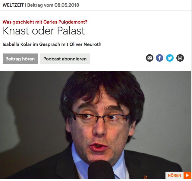 La ràdio pública alemanya Deutschlandfunk ha afirmat avui que l'euroordre espanyola contra el president Carles Puigdemont està molt tocada, i que ha perdut argumentació jurídica des que el ministre d'Hisenda, Cristóbal Montoro, va desmentir que el referèndum de l'1 d'octubre s'hagués fet amb fons públics.