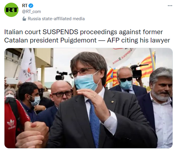 "El tribunal italià suspèn els procediments contra l'expresident català Puigdemont".