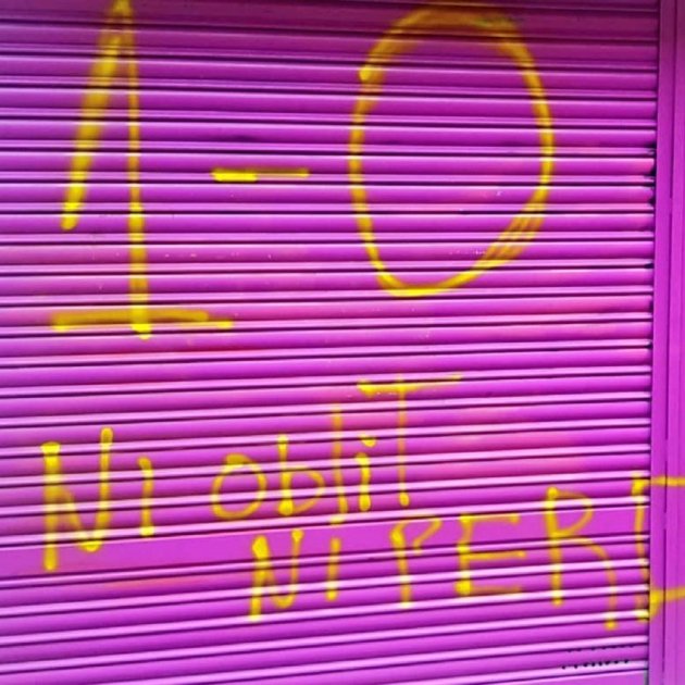 Así ha amanecido esta mañana el comercio de mi madre: amenazas y apología del golpe de Estado del 1-O. Los comandos separatistas campan a sus anchas legitimados por Torra, acosando incluso a las familias de quienes defendemos la democracia española. Cobardes. #NoNosCallarán. pic.twitter.com/ZyxM2zw4lc