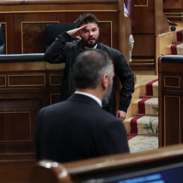 Rufián ha aprofitat l'avinentesa per tornar a recordar a Interior que encara no s'ha obert cap investigació pel cas de Roger Español i, per contra, ha tardat molt poc a obrir una investigació pel sopar dels policies destinats a Barcelona.