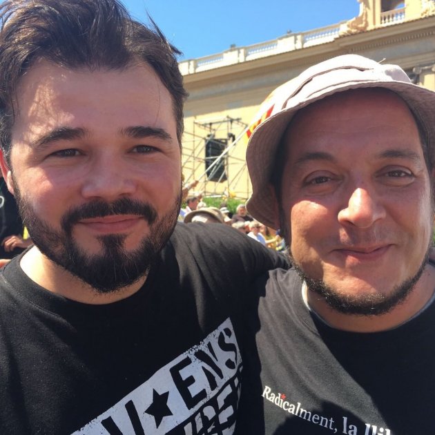Una imatge curiosa i divertida on tant Rufián com Fernández apareixen somrients i que serveix per donar suport a la frase de Cuixart, que minuts més tard també ha pronunciat el president de l’ANC, Jordi Sànchez. Un atac a l’executiu de Rajoy arran de la persecució penal que està duent a terme el Tribunal Constitucional contra els responsables de la consulta del 9-N i contra els cinc membres de la Mesa del Parlament. “A Espanya queda clar que la divisió de poders no existeix”, han exclamat des de les entitats sobiranistes.
