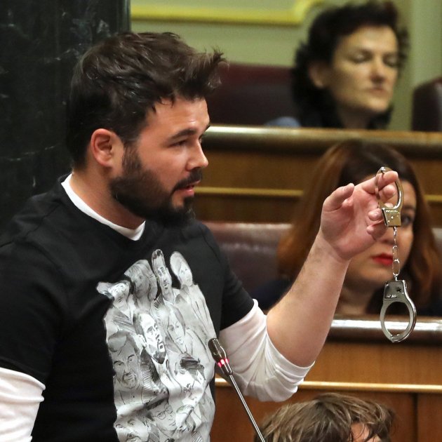 "Això és la seva política, programa electoral, el seu diàleg amb els nostres companys, al Govern legítim de Catalunya. Vostès han fet de les seves presons el nostre malson i nosaltres farem de les nostres urnes, el seu", ha sentenciat el republicà indicant que els cossos policials van anar a "bastonades" amb els ciutadans l'1-O. Rufián ha demanat als diputats del Partit Popular que no es posessin "nerviosos", acusant-los que a alguns "els agradaria veure'l amb unes d'aquestes algun dia". Això sí, el mateix portaveu d'ERC ha afirmat que a ell li agradaria veure "un tal M. Rajoy" amb aquestes.