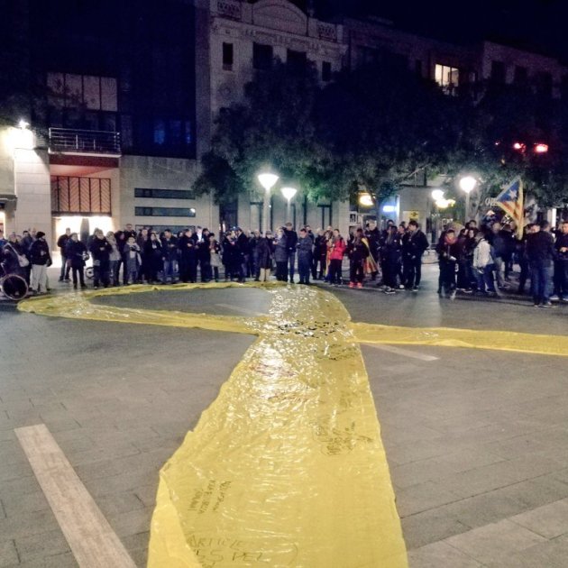 La protesta l'ha convocada l'Assemblea Nacional Catalana (ANC) en aquesta localitat i el Comitè en Defensa de la República (CDR). Els manifestants han expressat malestar amb crits de "llibertat" i han fet servir xiulets, cassoles i altres estris per fer sentir la seva veu.