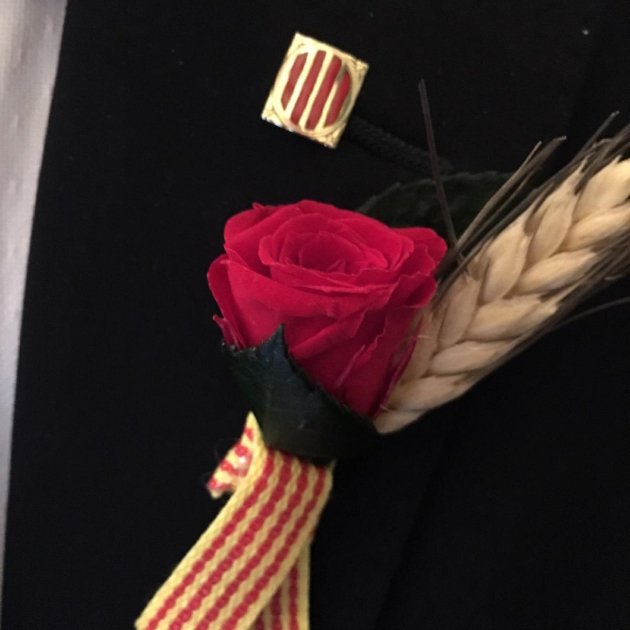 Aquesta és la segona Diada de Sant Jordi que els presos polítics passen a la presó i el Grup d'Amics de Santa Eulàlia de Ronçana, amics del conseller Turull, han volgut fer arribar als presos aquest present per celebrar la festivitat del patró de Catalunya. Acompanyava al pin una cita de Joan Fuster: "O ens recobrem, en la nostra unitat, o serem destruïts com a poble. O ara, o mai",