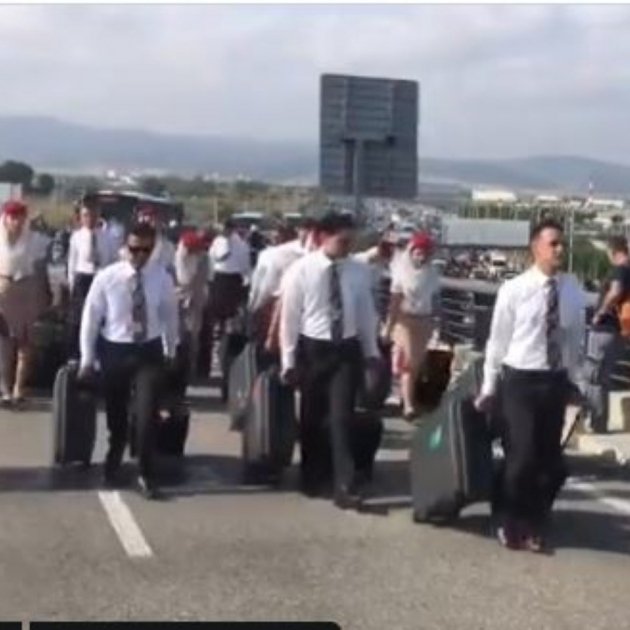 Els pilots i hostesses han aparegut al mig de l'autopista arrossegant maletes.