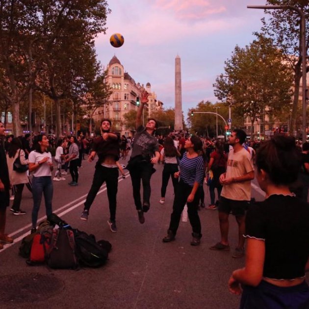 La convocatòria de les protestes dels CDR d'aquest vespre als Jardinets de Gràcia demanava als assistents que hi acudissin amb pilotes i xandall. La raó: convertir la cruïlla de l'avinguda Diagonal amb el passeig de Gràcia en una gran pista de jocs.