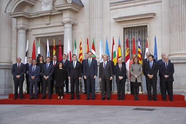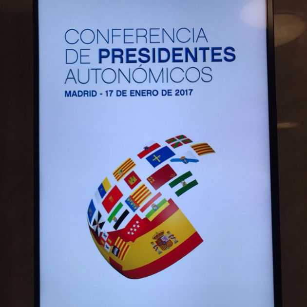 Catalunya i el País Basc no seran presents a la Conferència de Presidents Autonòmics que se celebra avui al Senat, però les seves respectives banderes sí. En un intent per evitar que les cadires buides del president del Govern, Carles Puigdemont, i del lehendakari, Iñigo Urkullu, marquin la sisena conferència de la història d'aquest tipus, l'Estat ha decidit incloure tant la senyera com la ikurriña en el cartell que presideix la reunió. Les dues se sumen a les banderes de les altres comunitats, totes envoltades d'una gran bandera espanyola.